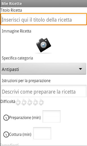 Sviluppata interamente in linguaggio java utilizzando l'android sdk, gestisce le ricette tramite un database interno Sqlite; inoltre è multilingua (per ora solo italiano ed inglese).